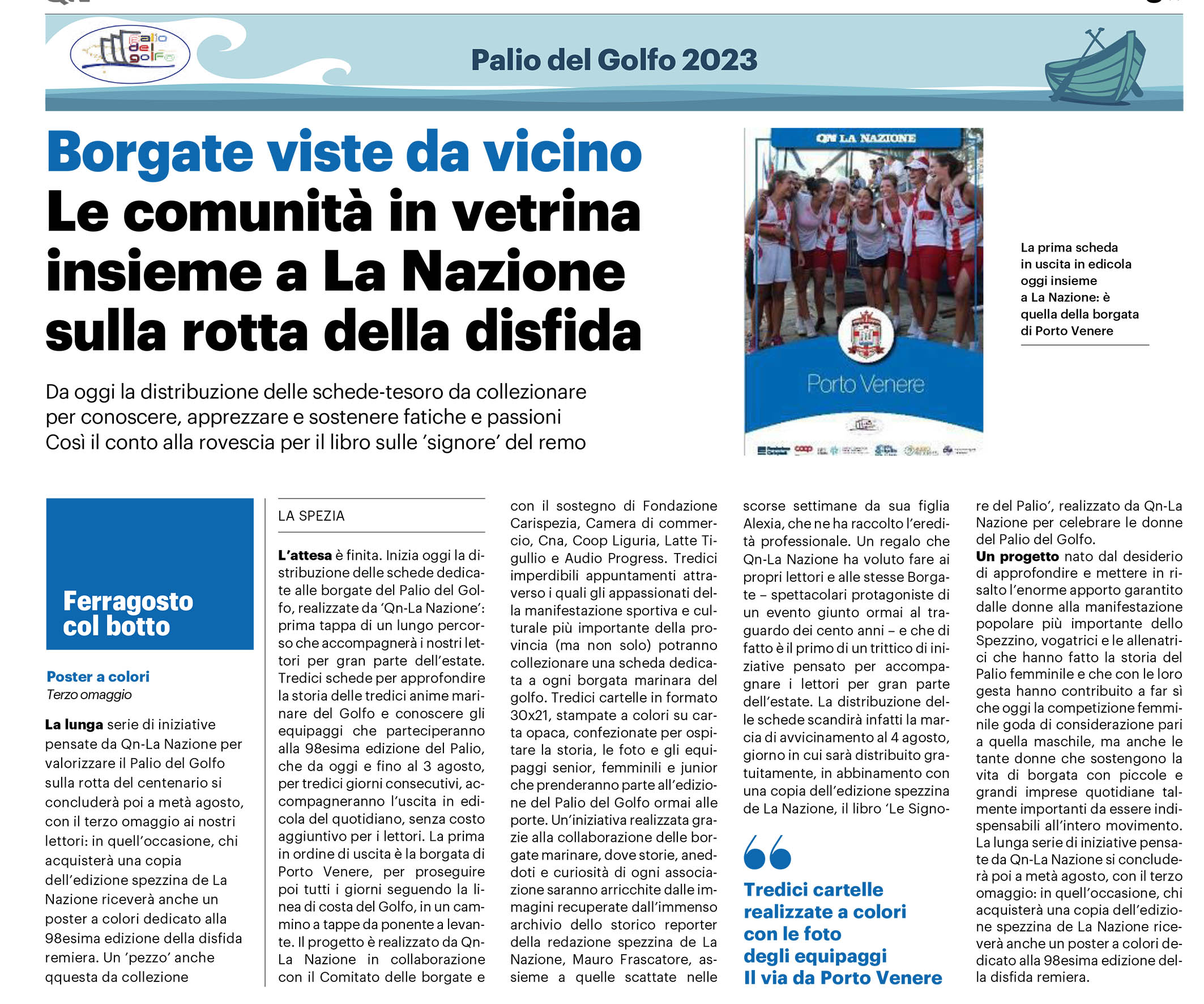 Borgate viste da vicinoDi Palio del Golfo / 22/07/2023 Articoli correlati Tempi duri per il Canaletto. Il prezzo per la nuova sede 2023 Borgate, sesto mandato per Gianello 2023 Tellaro: La Borgata cerca vogatori junior 2023 Tutte le date delle prepalio. La gara clou il 6 agosto 2023
