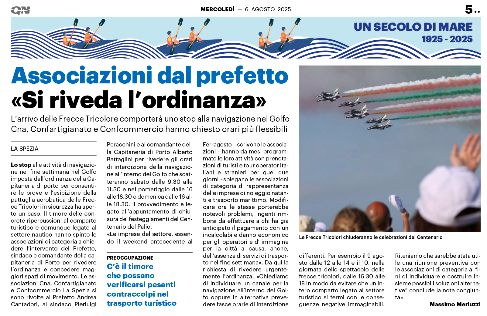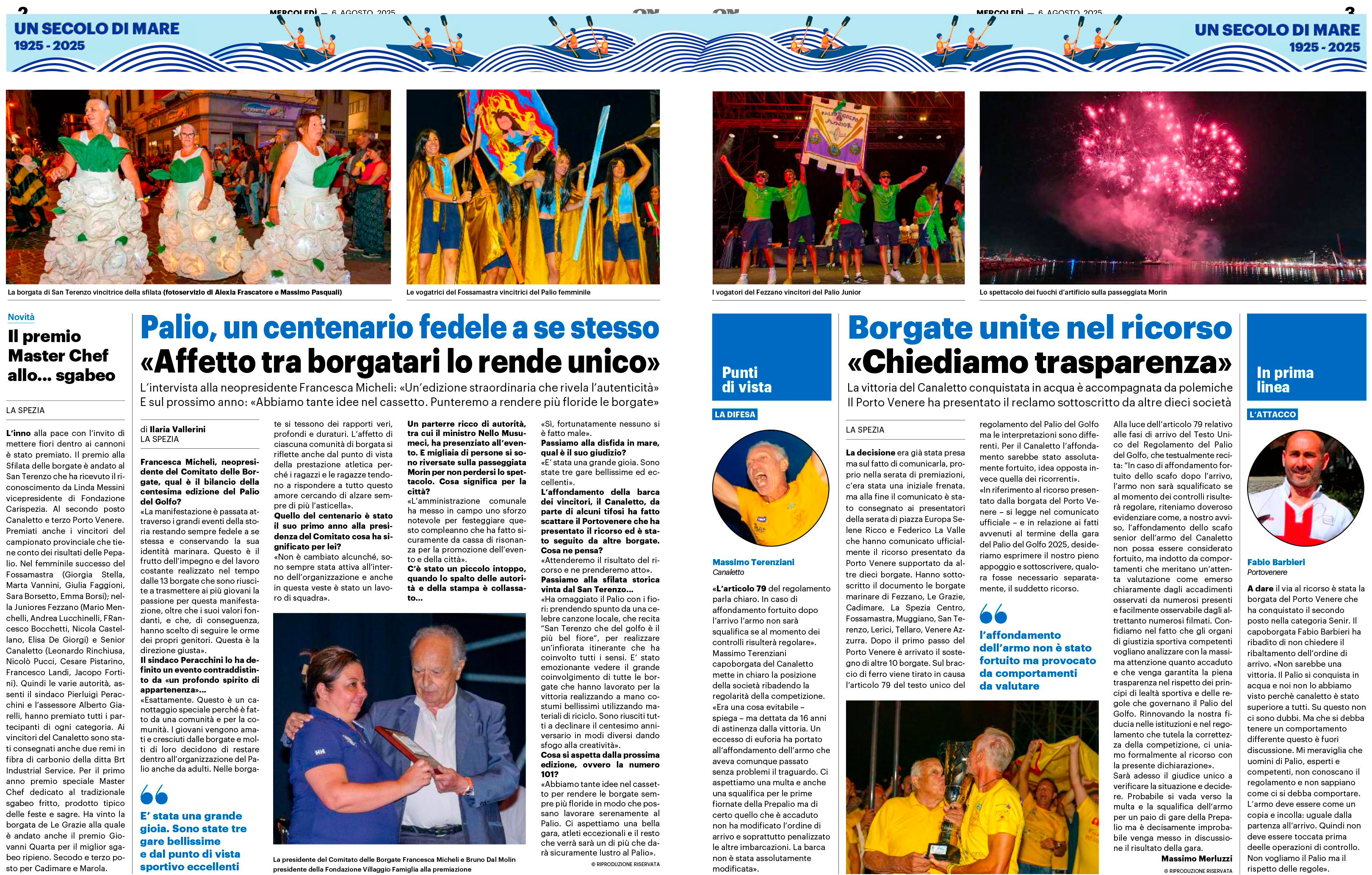 Un secolo di mareDi Comitato delle Borgate / 06/08/2025 La Nazione, 6 agosto 2025 Articoli correlati Comune e borgata ai ferri corti. Venere Azzurra ancora nel mirino 2025 Un Palio di polemiche. Finanziamenti al Comitato “Non torniamo indietro” 2025 “Gianello soltanto indagato. Il Comune non si intromette” 2025 Palio del Golfo numero 100 è la storia del nostro popolo 2025